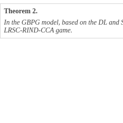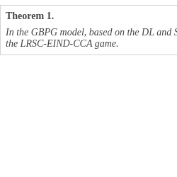 Here, let us introduce a technique in proving security theorems for cryptographic schemes by using the set $BPGS=\{G,{G_{e}},\hat{e},p,Q,{Q_{e}}\}$, namely, the generic bilinear pairing group (GBPG) model (Boneh et al., 2005). The GBPG model is embedded in the adversary games of security theorems that are played by adversaries (querier) and a challenger (responder). When adversaries would like to perform all operations in the set $BPGS=\{G,{G_{e}},\hat{e},p,Q,{Q_{e}}\}$, namely, the addition in G, the multiplication in ${G_{e}}$ and the bilinear pairing mapping $\hat{e}$, they must issue the corresponding queries (oracles) to the challenger. Upon receiving these queries, the challenger then responds the associated computation results. It is worth mentioning that all elements of G and ${G_{e}}$ are encoded into distinct bit strings by two random mappings. Also, adversaries can issue the other queries of adversary games for security properties possessed in a cryptographic scheme. At the end of an adversary game in the GBPG model, if adversaries can find collisions on G or ${G_{e}}$, the discrete logarithm (DL) security assumption defined below on G or ${G_{e}}$ will be broken.