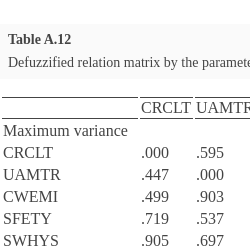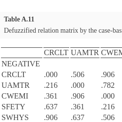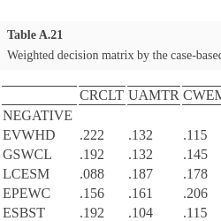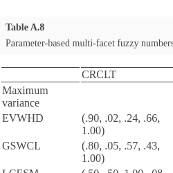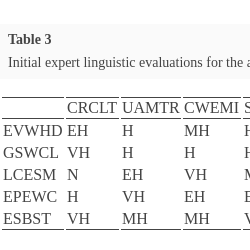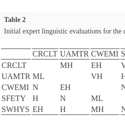 | 2 | Very Low (VL) | .2 | $(.20,.95,1.00,.20,.20)$ | $(.20,.57,.14,.00,.20)$ | $(.20,.57,.47,.20,.89)$ | $(.20,.57,.14,.20,.20)$ |