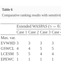 | Extended WASPAS ($\gamma =0.5$) | Extended TOPSIS | |||||||||