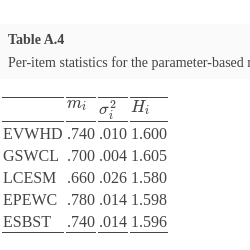 | 6 | Moderately High (MH) | .6 | $(.60,.27,1.00,.60,.60)$ | $(.60,.48,.00,.08,.60)$ | $(.60,.48,.25,.60,1.00)$ | $(.60,.48,.00,.60,.60)$ |