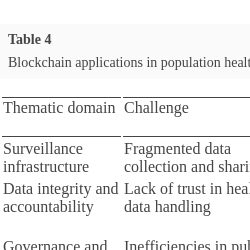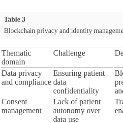 1 summarises the core thematic domains and associated challenges identified in the literature on blockchain applications in EHR systems.