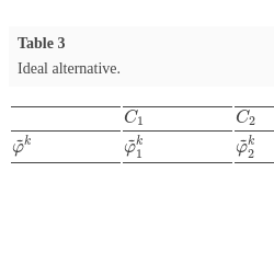 ${S^{{T_{k}}}}=\{{s_{i}^{{T_{k}}}}\mid i\in \{0,1,\dots ,{T_{k}}-1\}\}$. The decision makers also establish the ideal alternative by giving the ideal levels of each characteristic, which is shown in Table